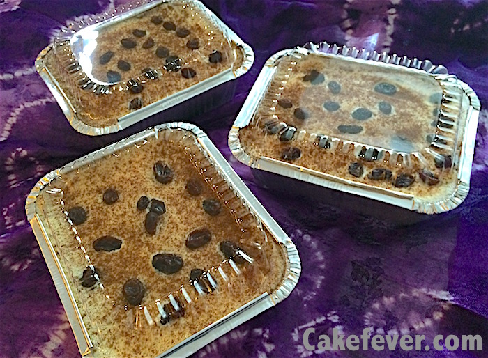 10.Taburi dengan kismis dan kacang kenari atau almond serta kayu manis. Panggang dengan cara au bain marie selama 15 menit untuk cup, atau 20-25 menit bila loyang besar. Suhu oven 180C. Perhatikan permukaan topping bila terlihat sudah sedikit kecoklatan dan kering, sudah saatnya diangkat.