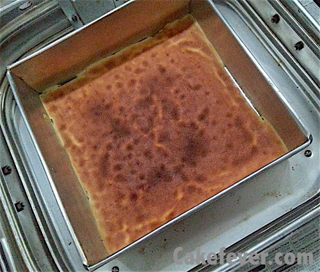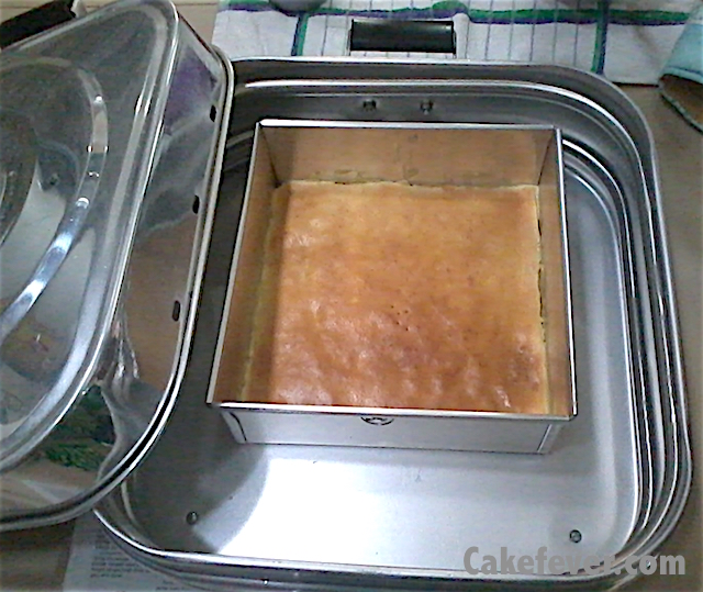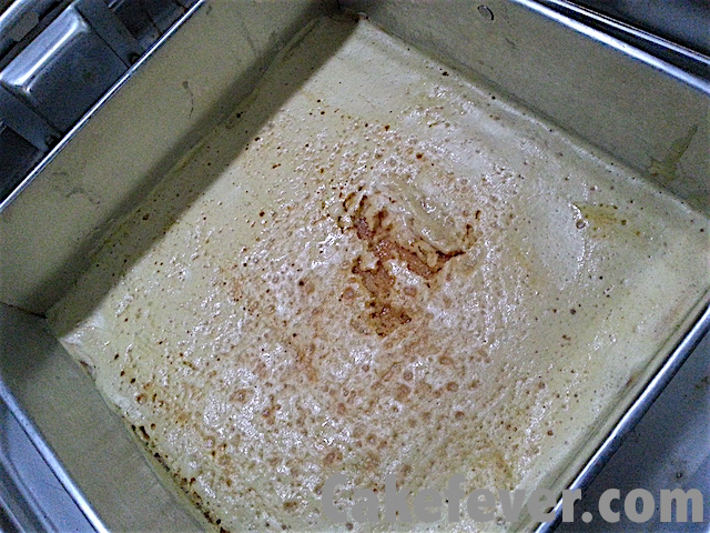 Buatku, dua tingkat kematangan lapis legit seperti gambar di atas adalah kematangan yang aku cari supaya lapis legit tidak terlalu tegang atau kaku, dan juga tidak terlalu lembek karena sudah cukup matang. Untuk mencapai kematangan seperti itu mau tidak mau memang harus dilihatin terus si lapis legitnya. Kalau sudah cukup terbiasa dengan sifat si oven, baru bisa lakukan setting timer supaya tidak harus bolak-balik melongok ke dalam oven. Sebagai contoh, bila menggunakan baking pan ini, dibutuhkan waktu sekitar 12 menit. Sementara bila menggunakan oven gas besar, cukup 5 menit.